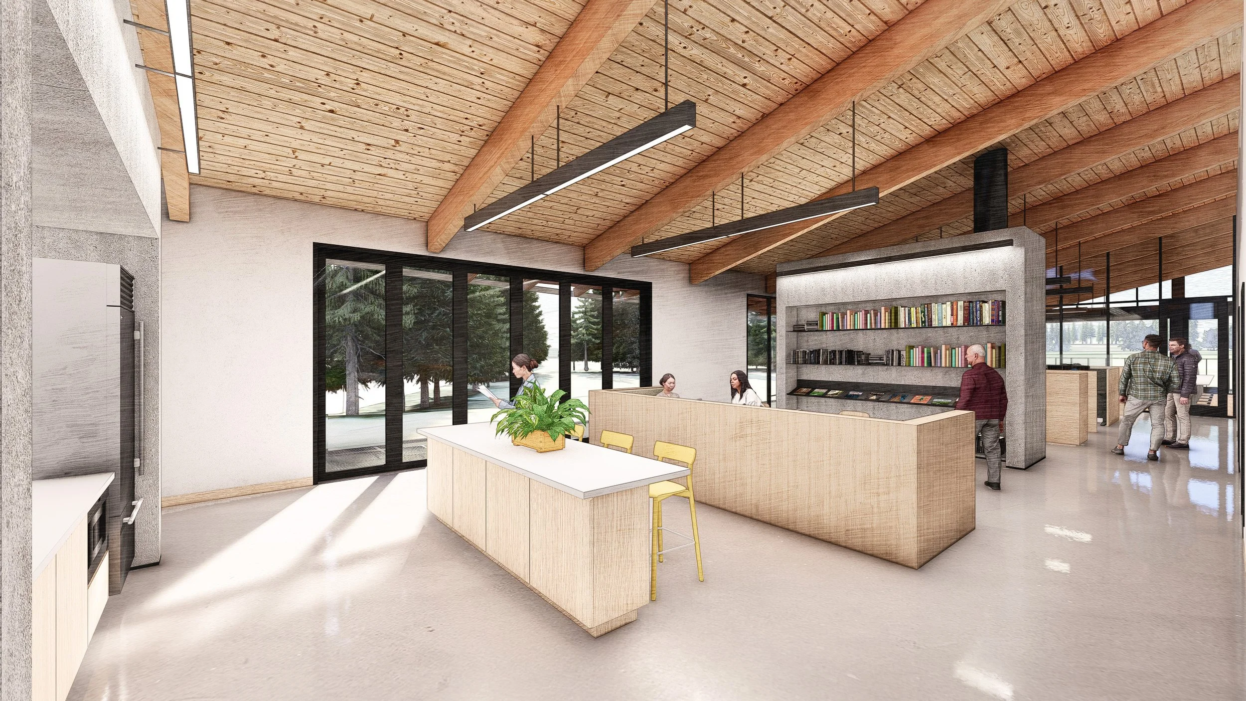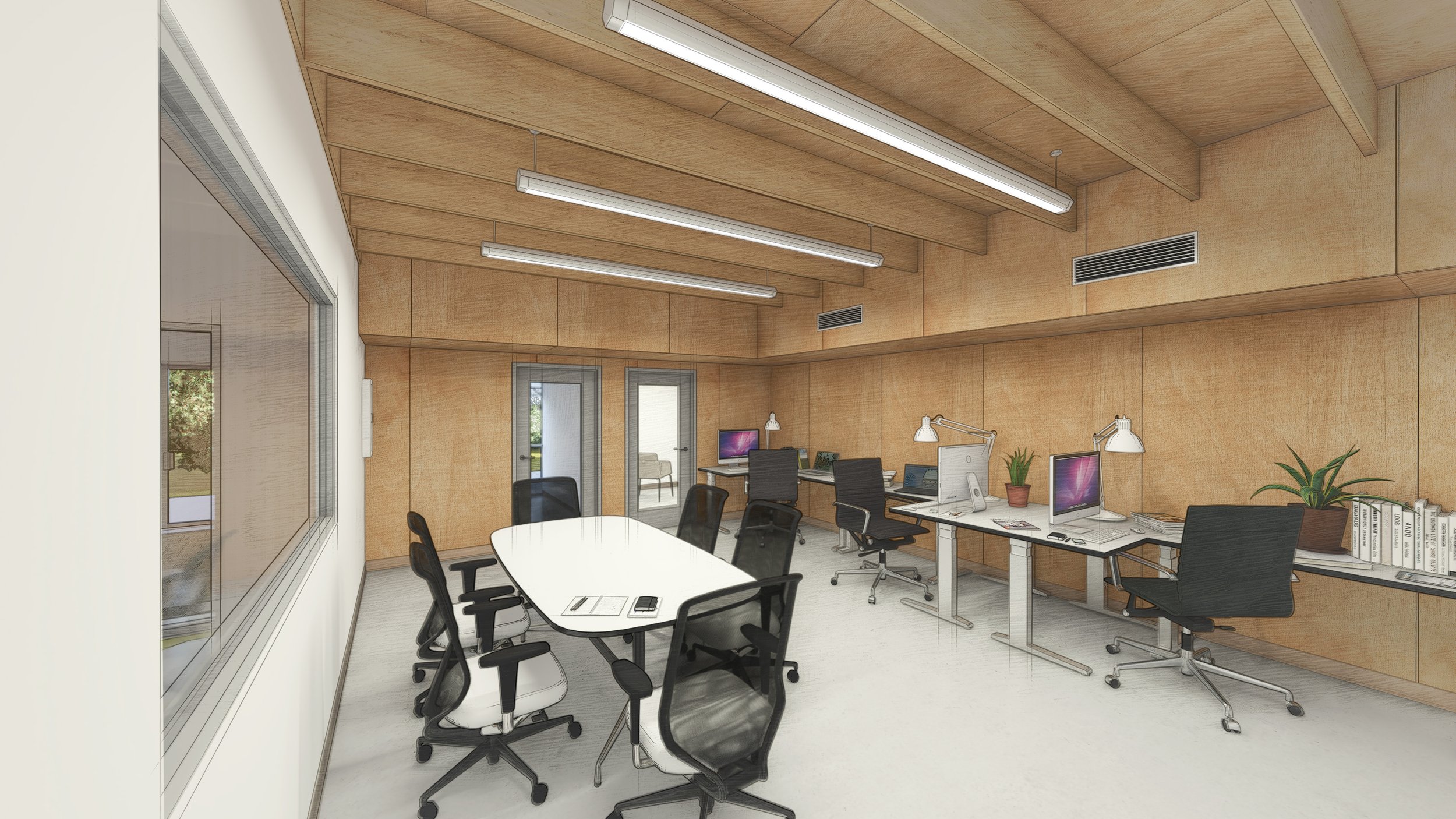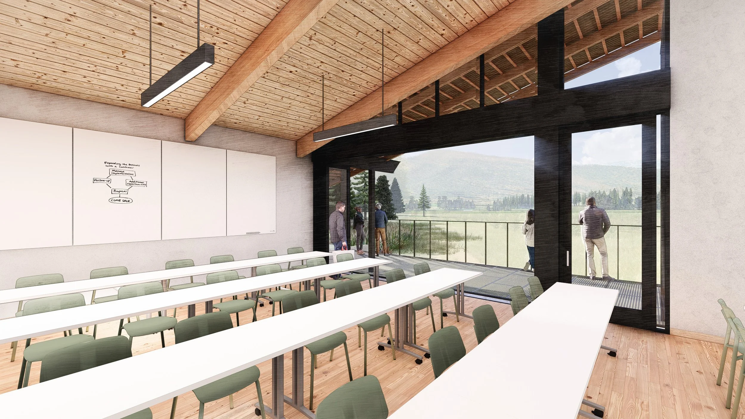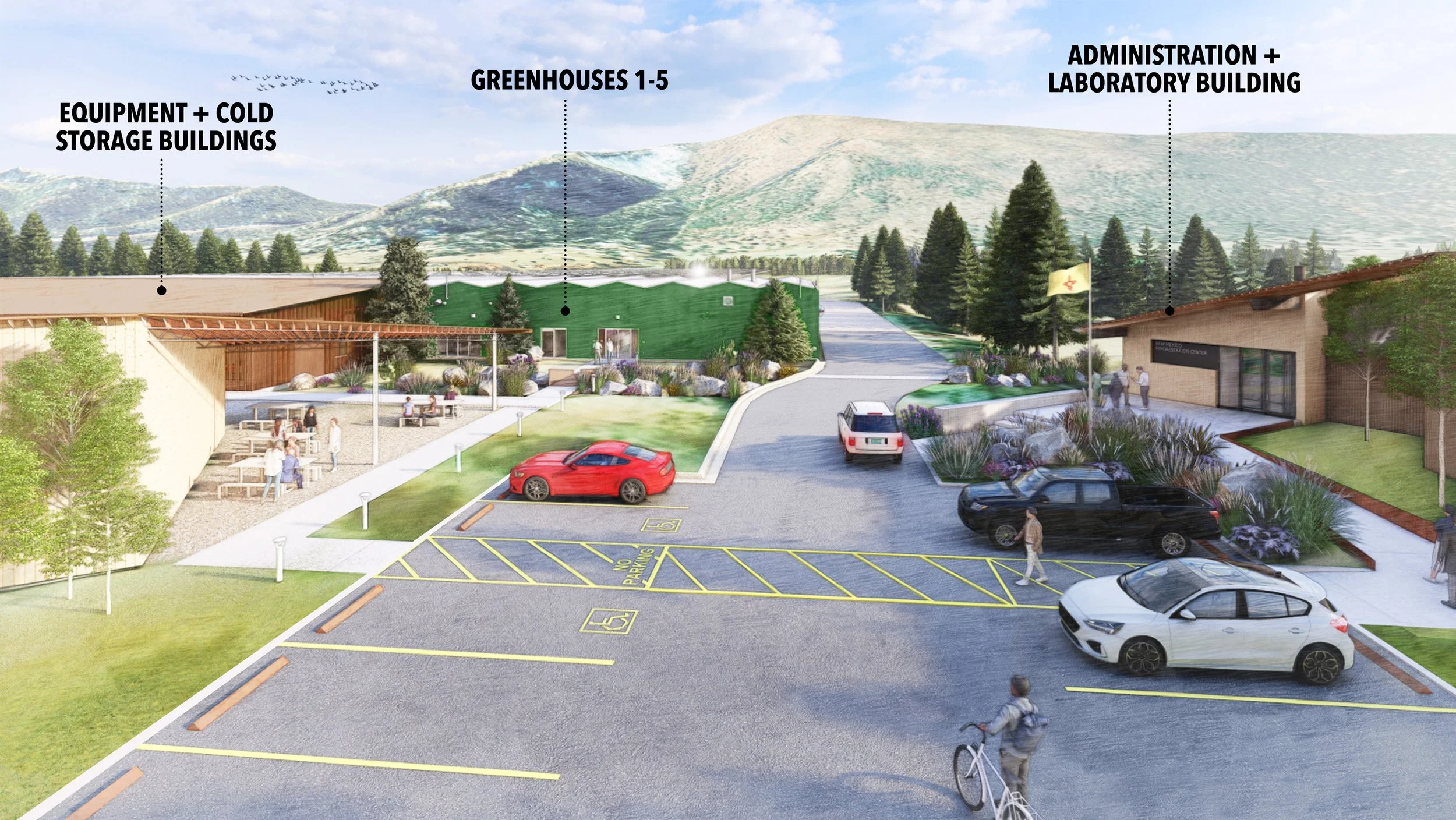 The new administration and laboratory building provides space for at least 60 people to conference inside, with operable window walls that allow the space to expand into the outdoors - accommodating even more people and keeping attendees connected to the beautiful Mora valley beyond. In addition, this building houses the laboratory space required to serve the greenhouse production needs and future research.