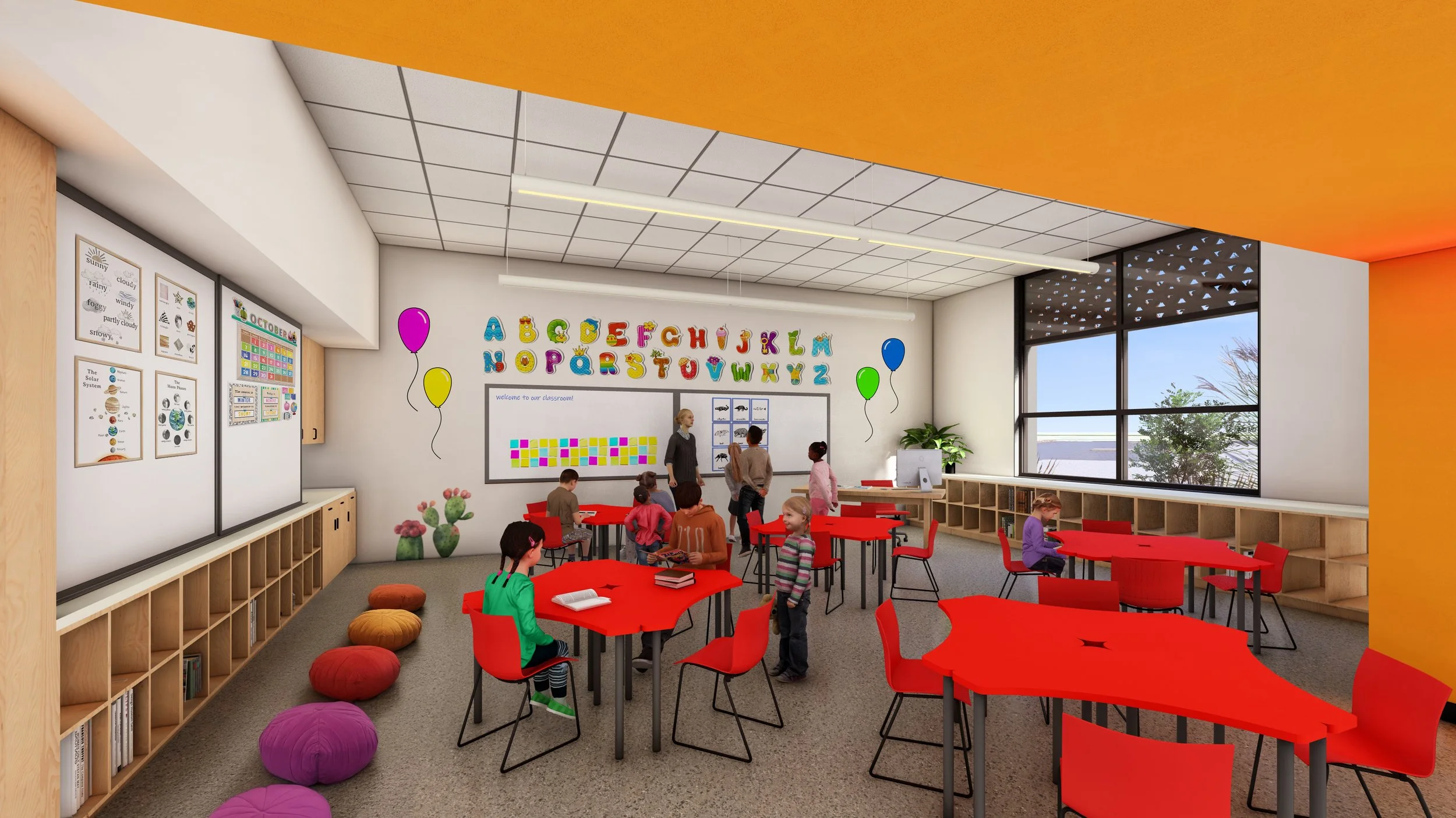 Planning for the new school also involves careful consideration of construction phasing to ensure uninterrupted learning. The existing school will remain fully operational throughout construction, with the new facility strategically sited on the adjacent baseball field and playground.